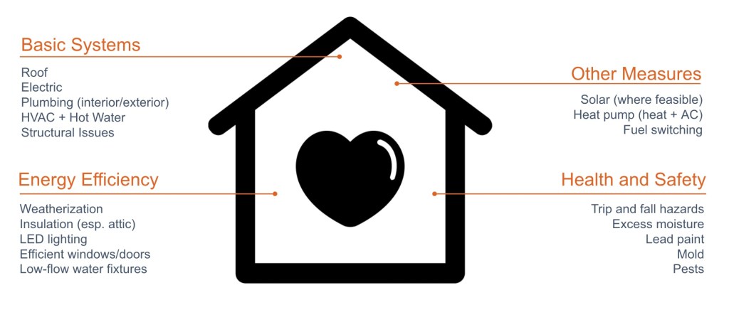 The work performed beyond the monetary cap of existing home repair programs is essential to making homes resilient to climate change and uncertain energy markets by ensuring the entire structure of homes are stable and basic systems are functional. In doing so, Built to Last seeks to restore the safety, health, affordability, and comfort of existing affordable housing in a way that: